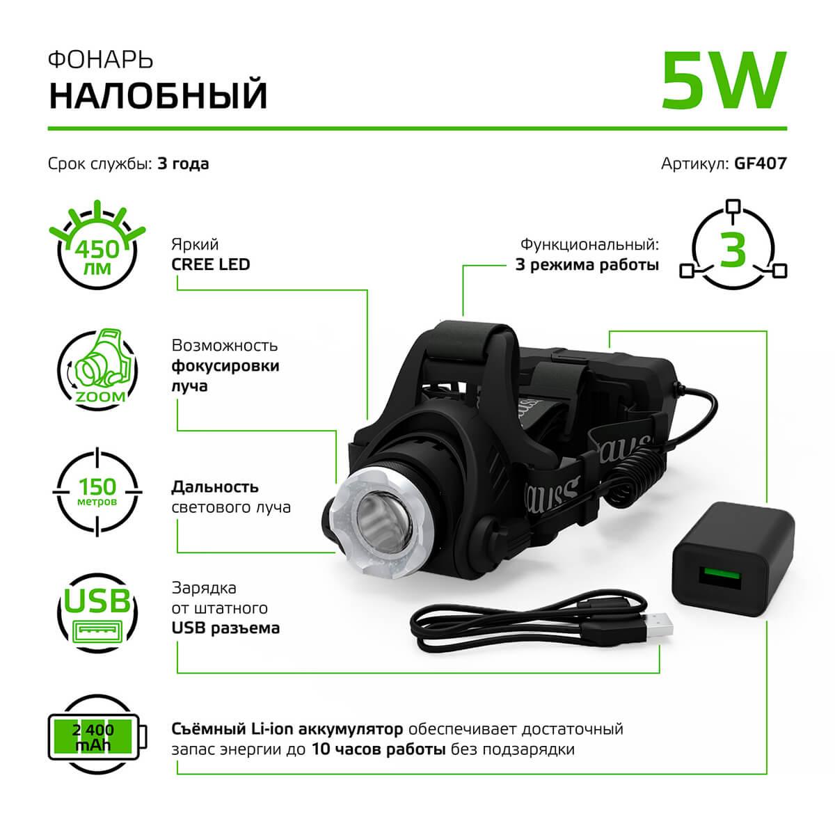 Налобный светодиодный фонарь Gauss аккумуляторный 110х105 450 лм GF407 - купить по низкой цене. Описание, характеристики, фото. Выгодная программа лояльности - скидки и бонусы по картам рассрочки, с доставкой на дом по Минску и всей Беларуси.