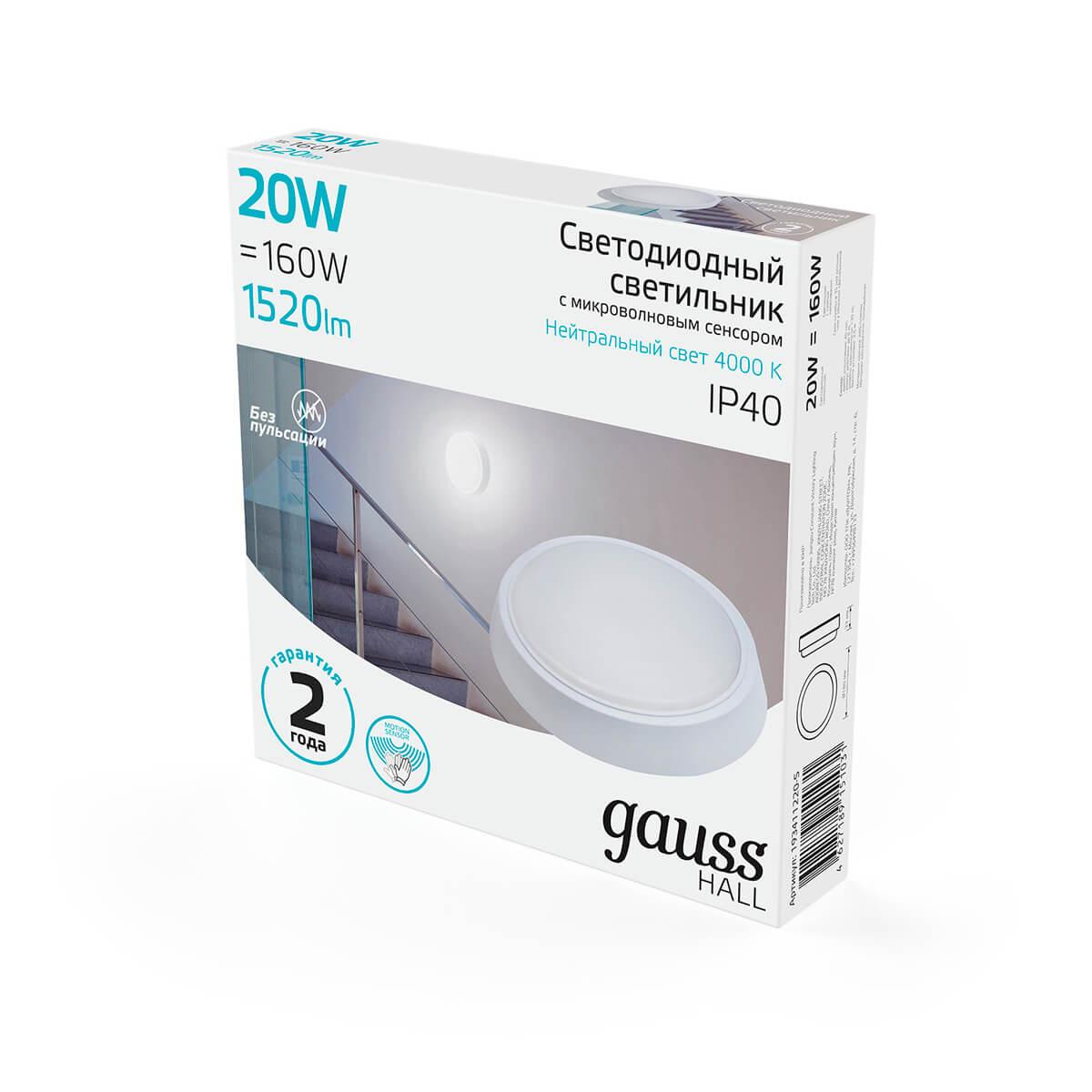 Настенно-потолочный светодиодный светильник Gauss Hall 193411220-S - купить по низкой цене. Описание, характеристики, фото. Выгодная программа лояльности - скидки и бонусы по картам рассрочки, с доставкой на дом по Минску и всей Беларуси.