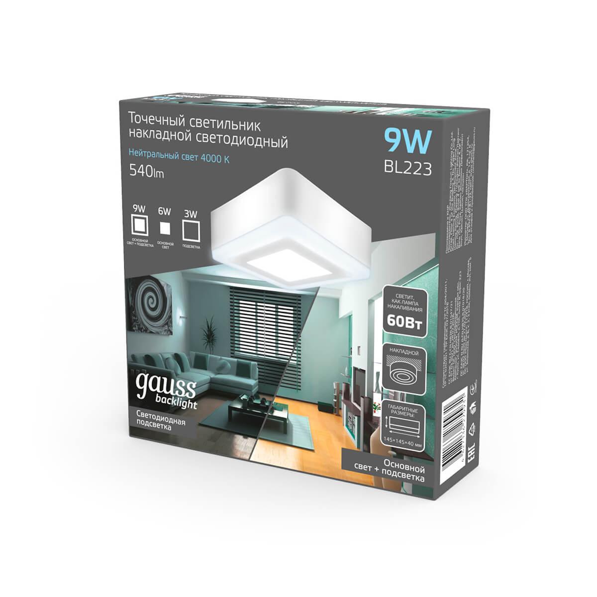 Потолочный светодиодный светильник Gauss Backlight BL223 - купить по низкой цене. Описание, характеристики, фото. Выгодная программа лояльности - скидки и бонусы по картам рассрочки, с доставкой на дом по Минску и всей Беларуси.