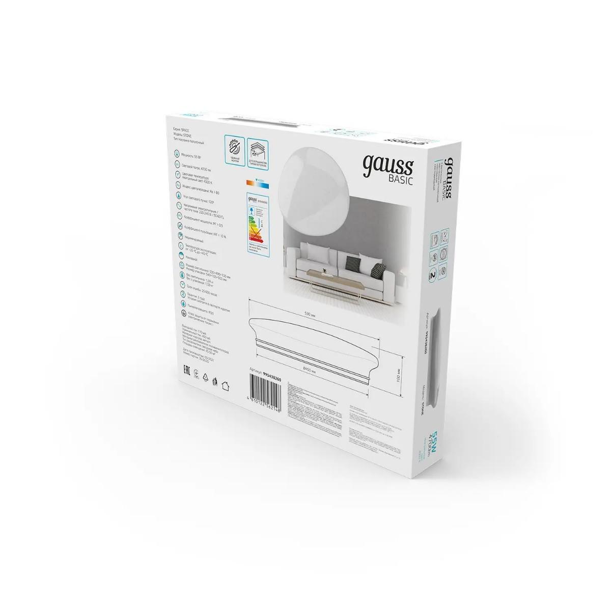 Потолочный светодиодный светильник Gauss Basic Space Stone 995438260 - купить по низкой цене. Описание, характеристики, фото. Выгодная программа лояльности - скидки и бонусы по картам рассрочки, с доставкой на дом по Минску и всей Беларуси.