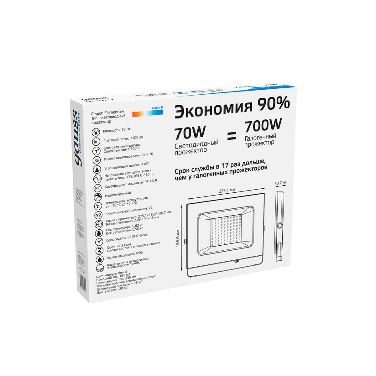 Прожектор светодиодный Gauss Slim 70W 6500К 613120370 - купить по низкой цене. Описание, характеристики, фото. Выгодная программа лояльности - скидки и бонусы по картам рассрочки, с доставкой на дом по Минску и всей Беларуси.