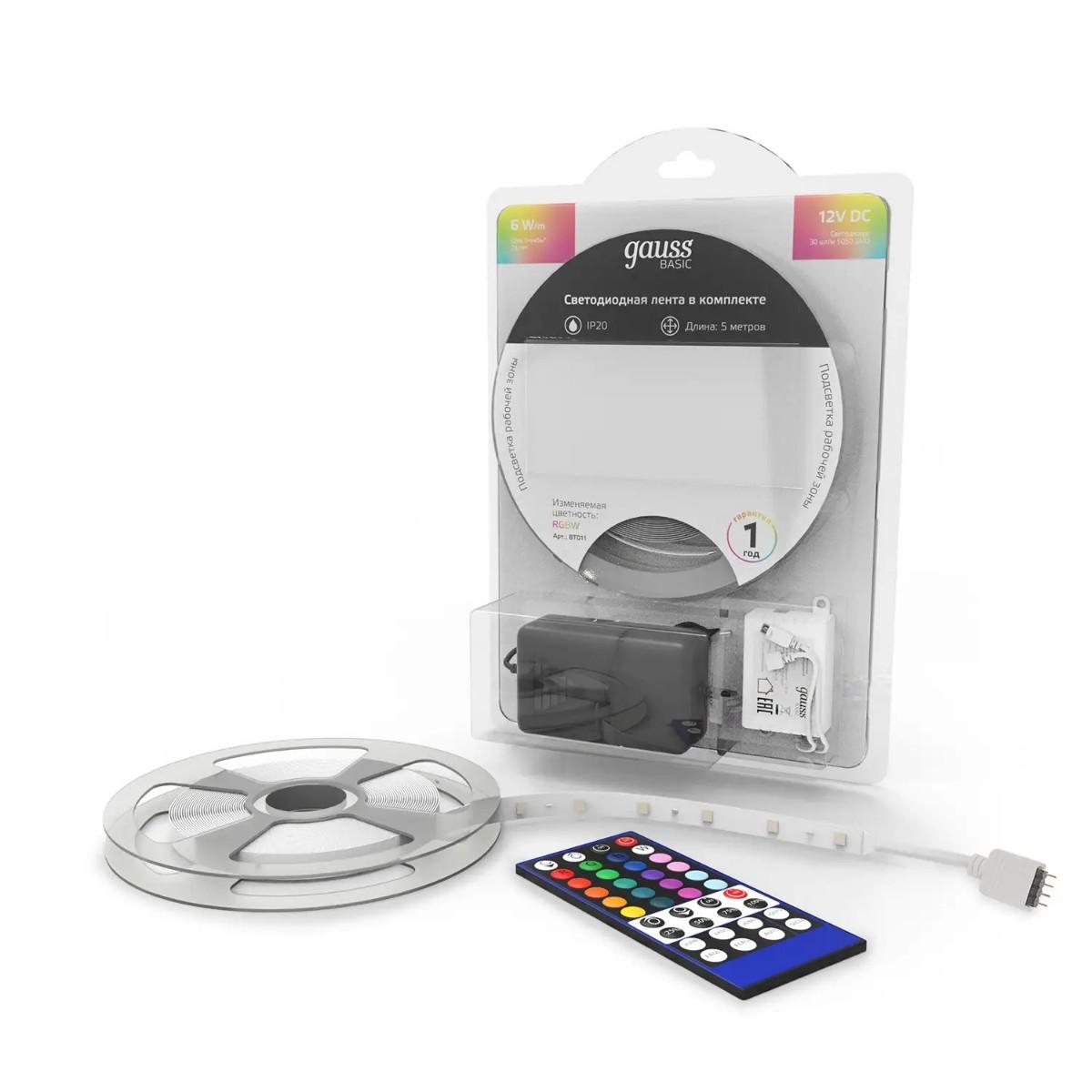 Светодиодная лента Gauss 6W/m 30LED/m 5050SMD разноцветный 5M BT011