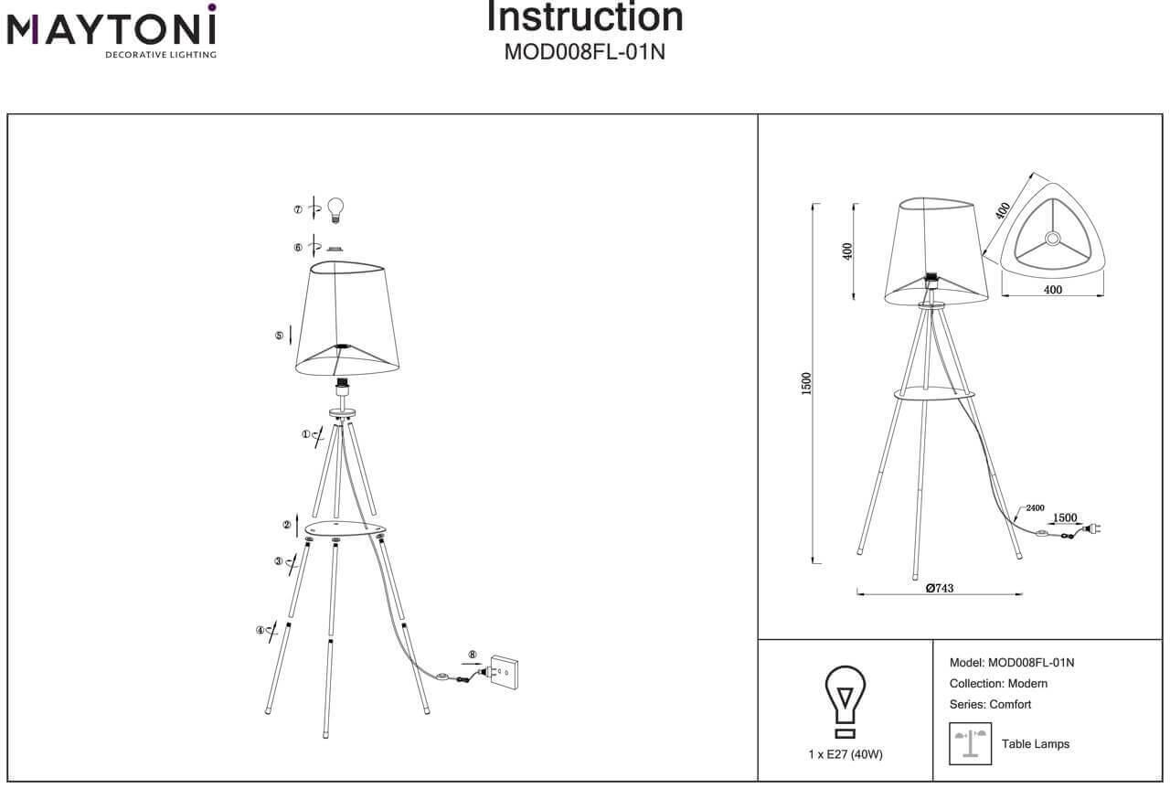 Торшер Maytoni Comfort MOD008FL-01N - купить по низкой цене. Описание, характеристики, фото. Выгодная программа лояльности - скидки и бонусы по картам рассрочки, с доставкой на дом по Минску и всей Беларуси.